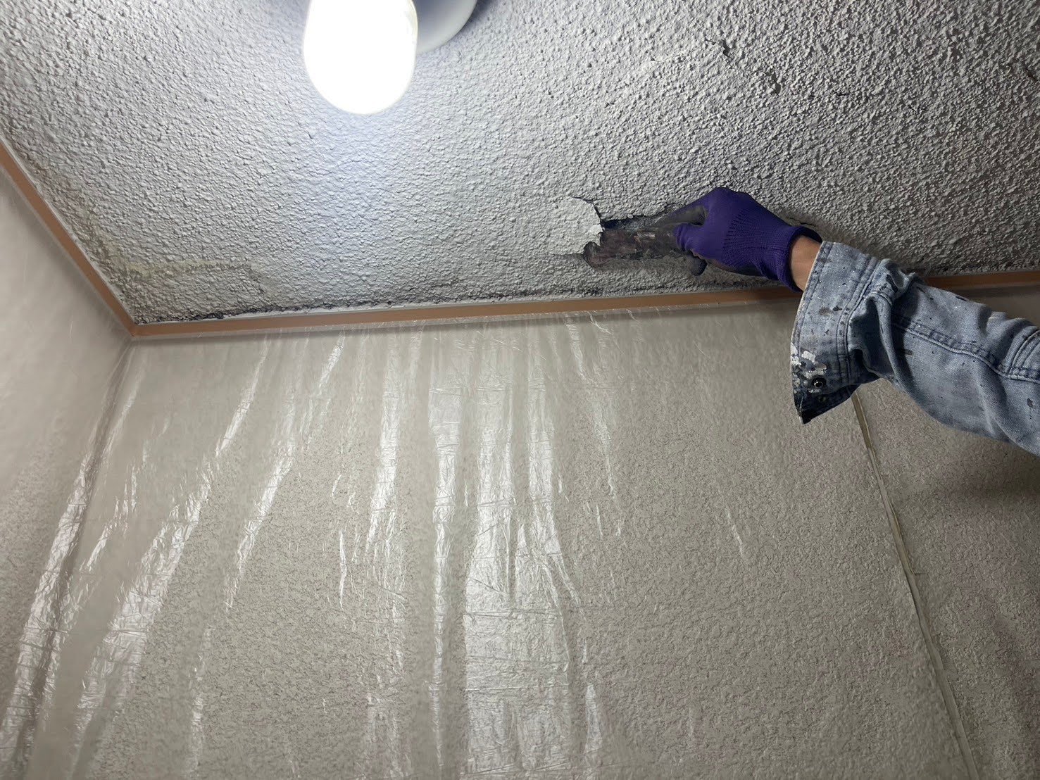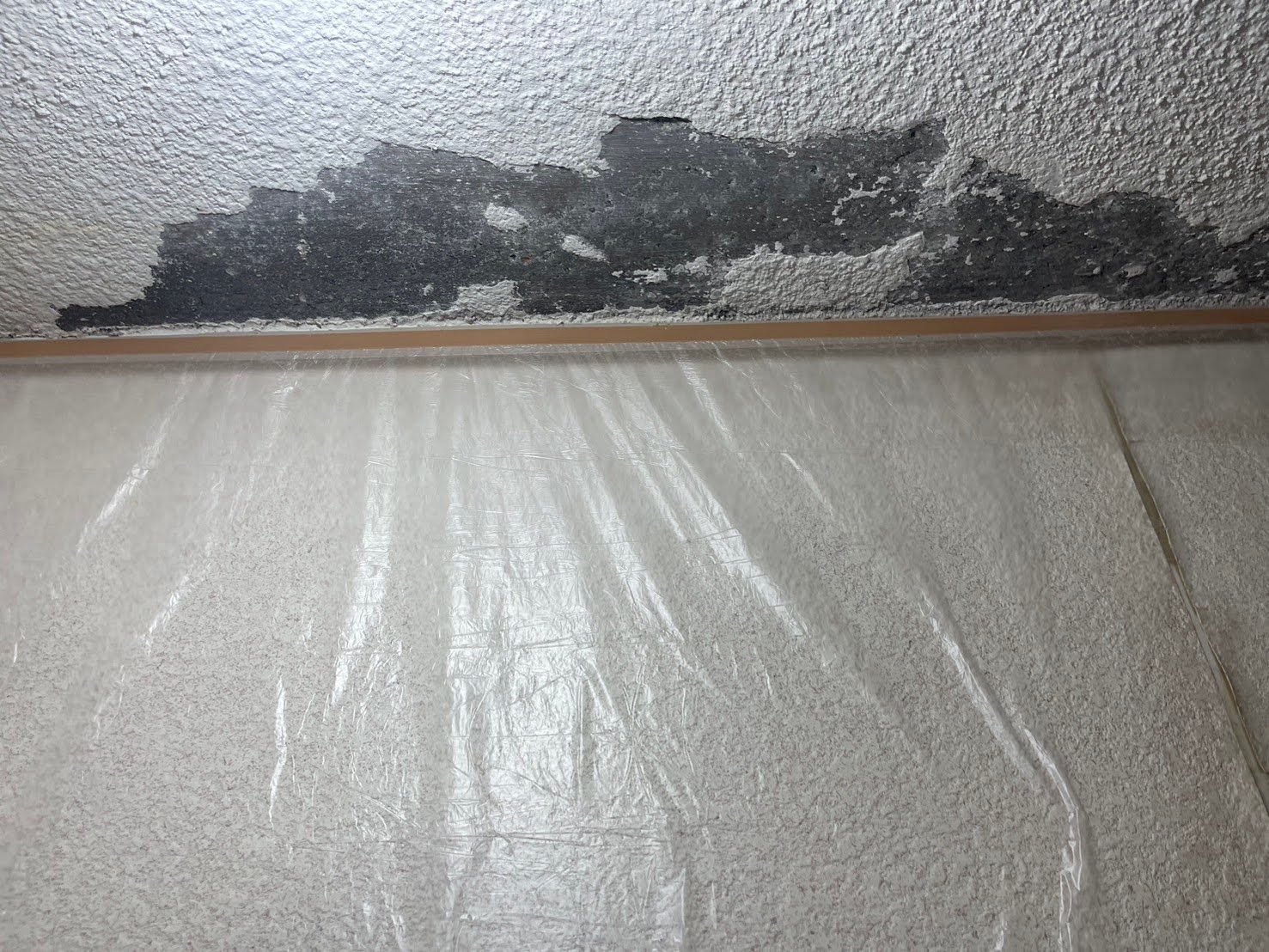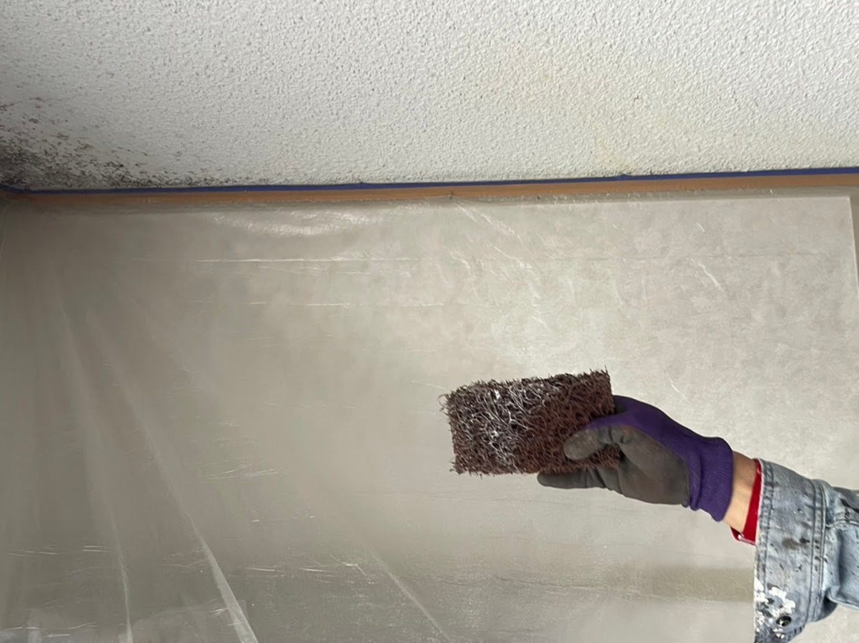 今回は天井補修に向けた**養生作業と下地処理(ケレン作業)**の様子をご紹介します🔧