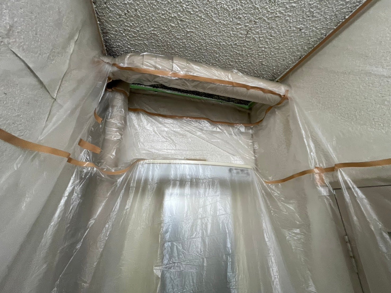 作業前に、室内や壁が汚れないようしっかりと養生を行います。