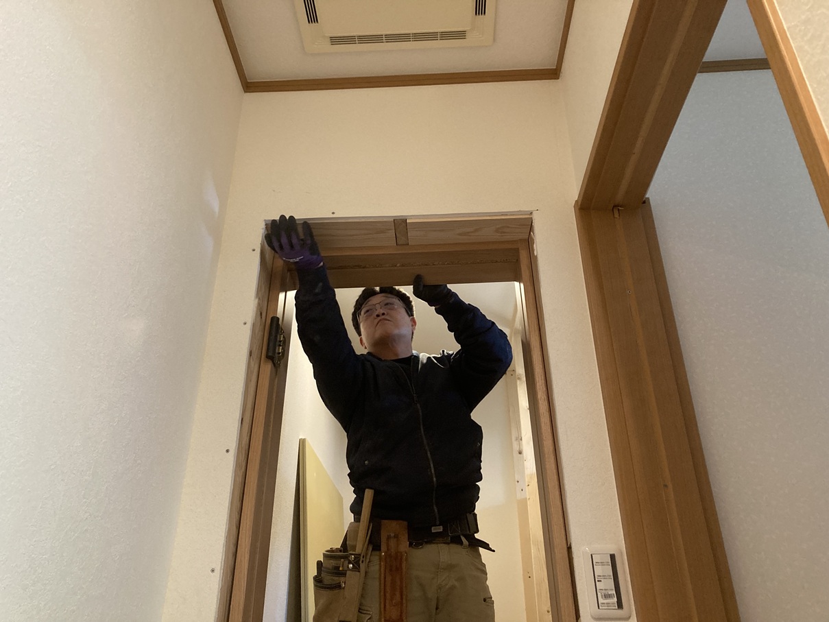 ■施工④ ドア枠造作中🚪