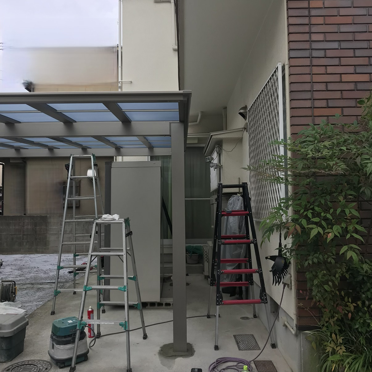 今回の工事では、あえて1台用ではなく2台用カーポートを設置しました。