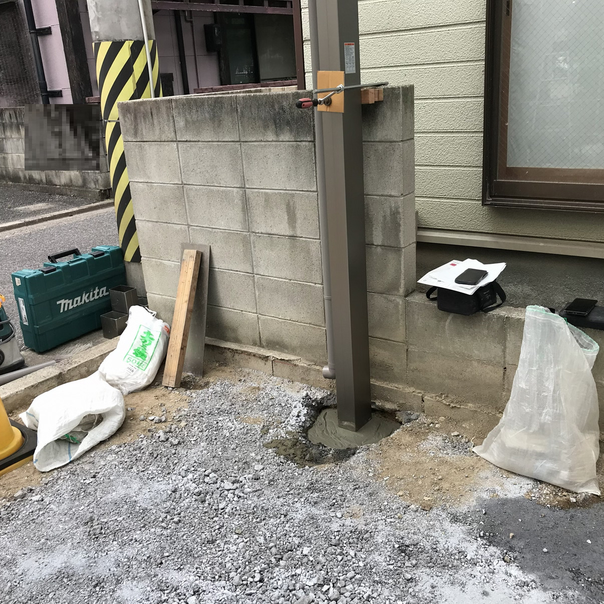 カーポートの柱を所定の位置に立てていきます。