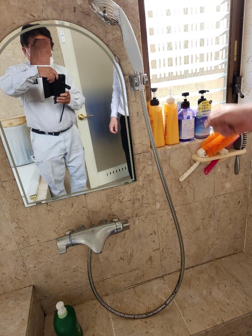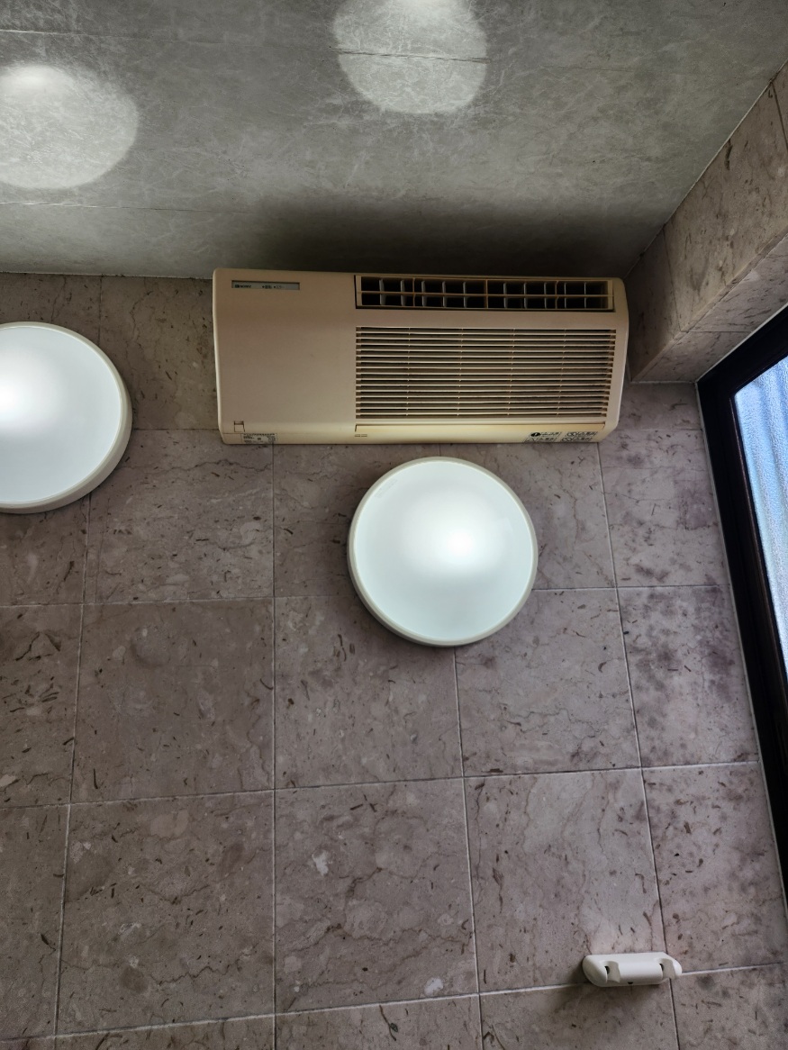 浴室内には既存の暖房乾燥機が設置されており、長年使用されてきた様子が見られました。