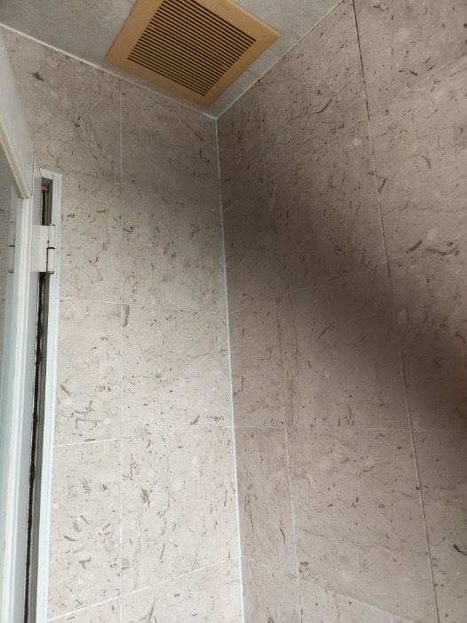 天井には換気口が設けられていますが、カバー部分の汚れや湿気跡が見られました。