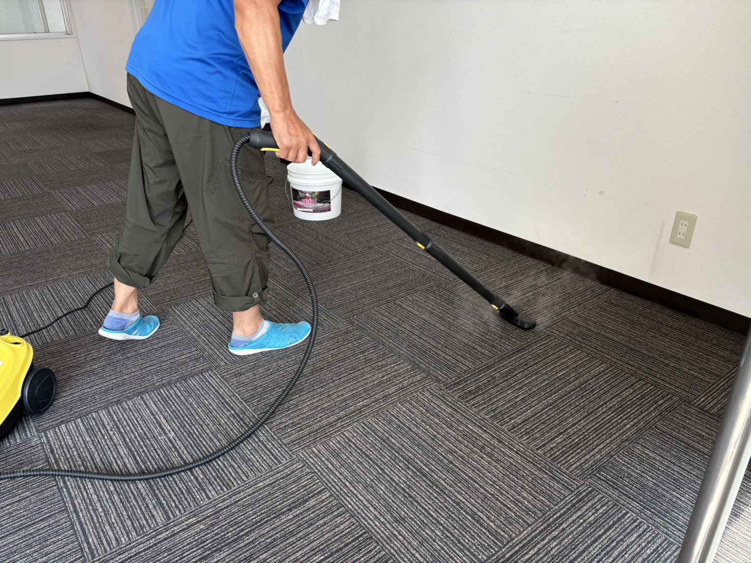 今回は、事務所内のフロアマット清掃の様子をご紹介します。