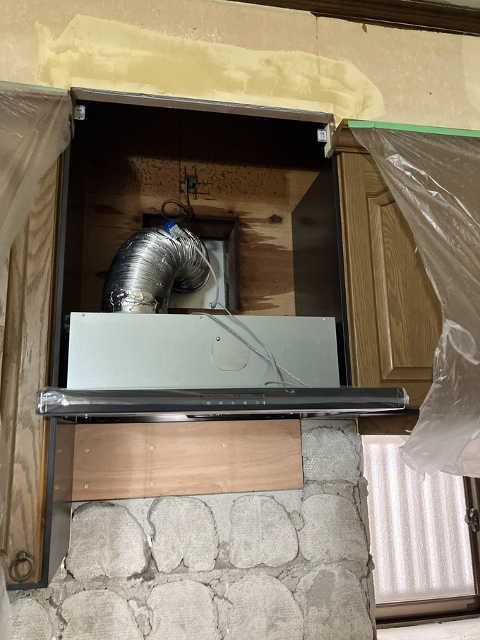 前回に引き続き、キッチンの換気扇リフォームの様子をご紹介いたします。