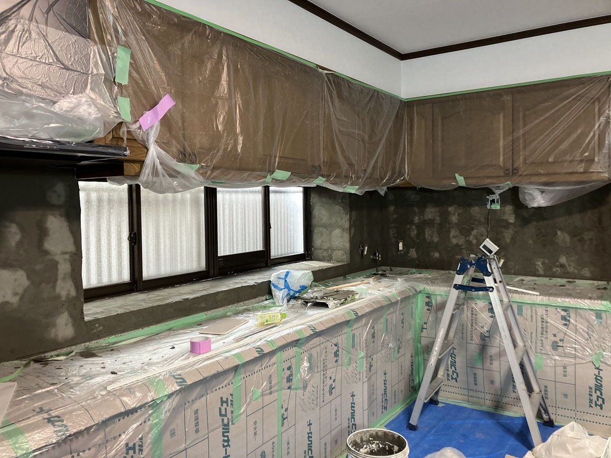 今回は天井から壁、そして勝手口まわりまで施工が完了しましたので、その様子をご紹介します。