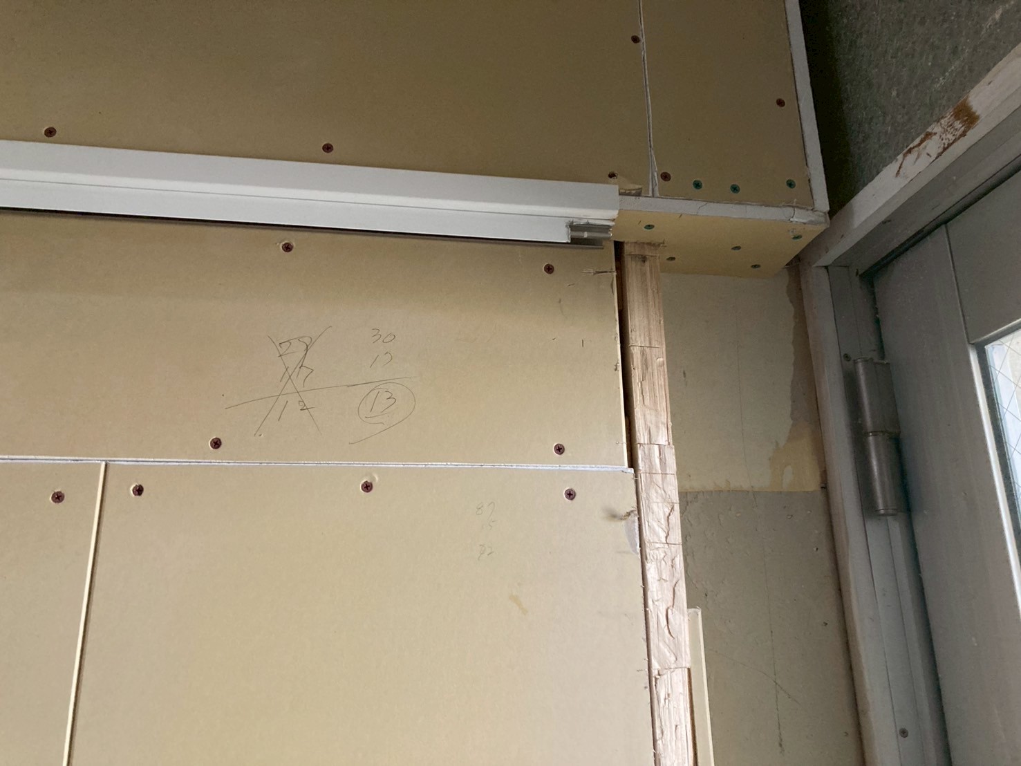 クロスはすでにはがしてあり、下地の補修や枠の取り替えを行いました。