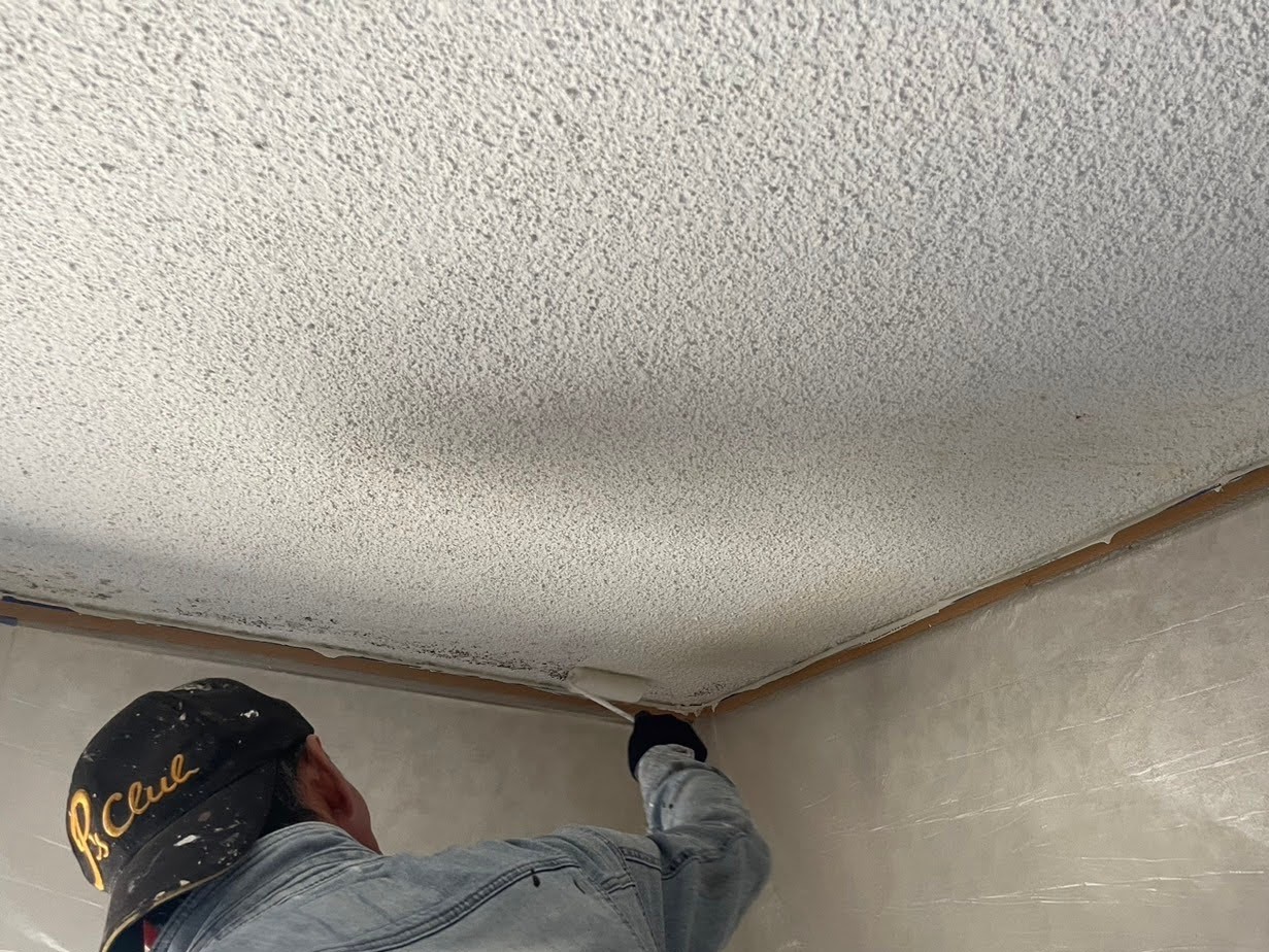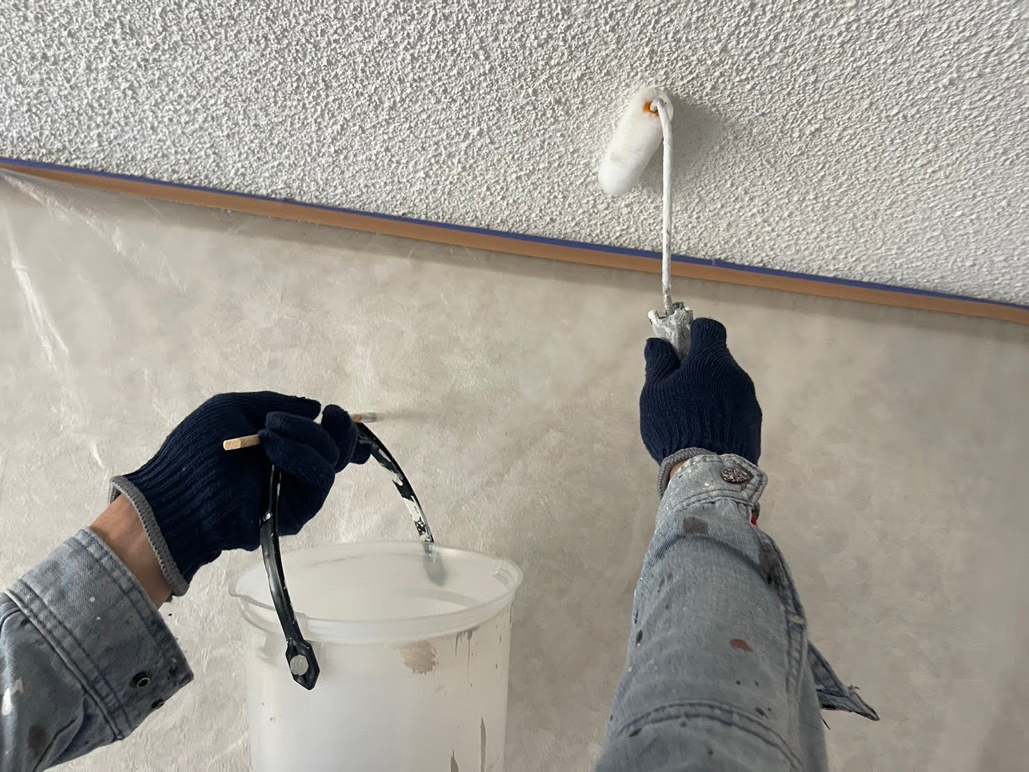 ローラーを使用して天井の塗装を行っていきます。