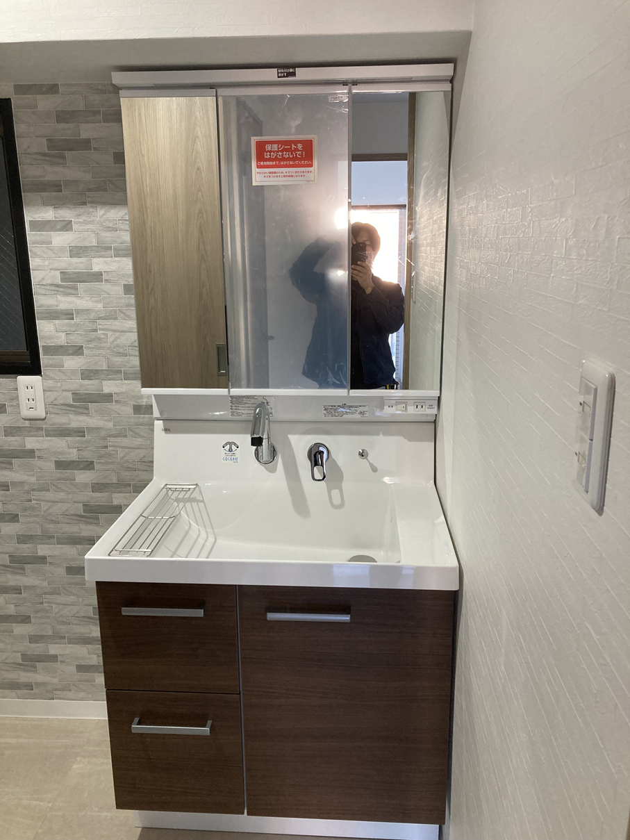 内装を一新し、明るく清潔感のある脱衣所に。 毎日の身支度や洗濯がしやすい空間になりました。