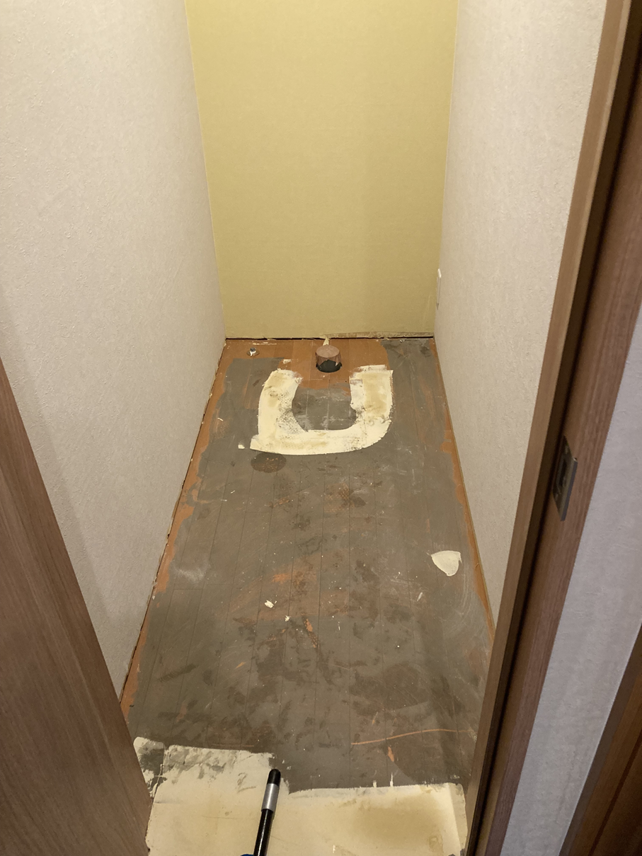 内部を解体し、下地や構造が見える状態になりました。 ここからトイレ空間を新たに作っていきます。