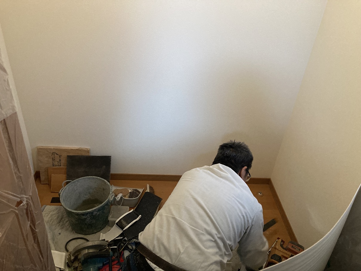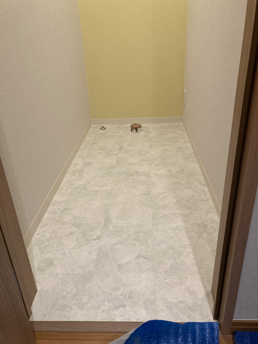 クロスや床材を施工し、清潔感のある空間に。 完成に向けて一気に仕上がっていきます。