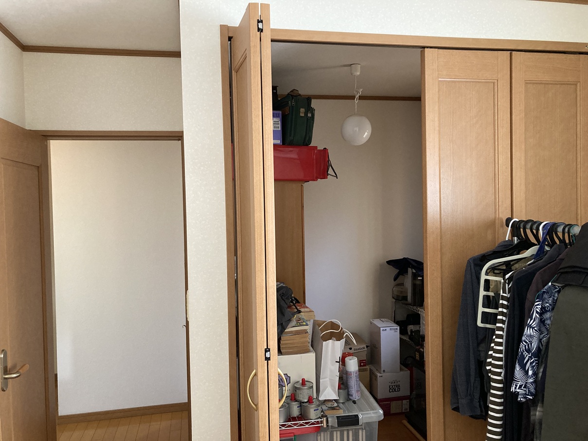もともとは一般的な収納スペースとして使われていました。 2階にトイレがないので、この空間を活かしてクローゼットの半分をトイレへリフォームしていきます。