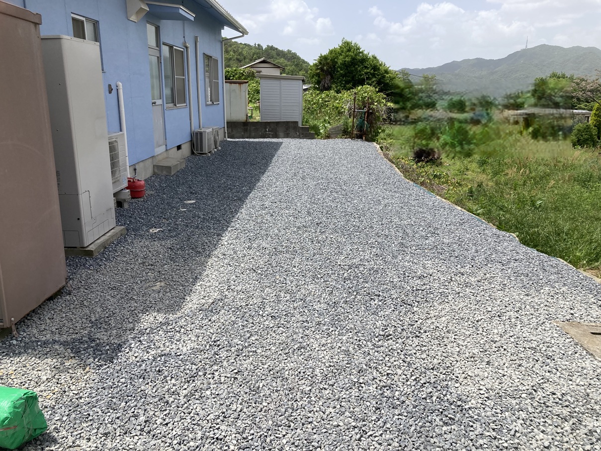 after 防草シートの上に砂利を敷き、庭裏側のリフォームが完成しました✨管理の手間が減り、安心して使えるスペースになりました😊