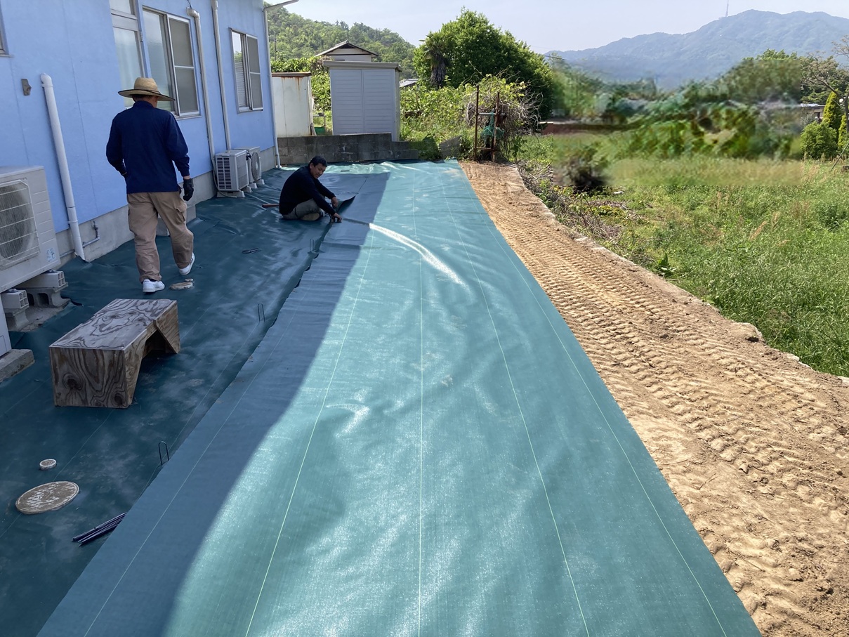 整地後は、防草シートを敷き込み、しっかりと雑草対策を行います🌿