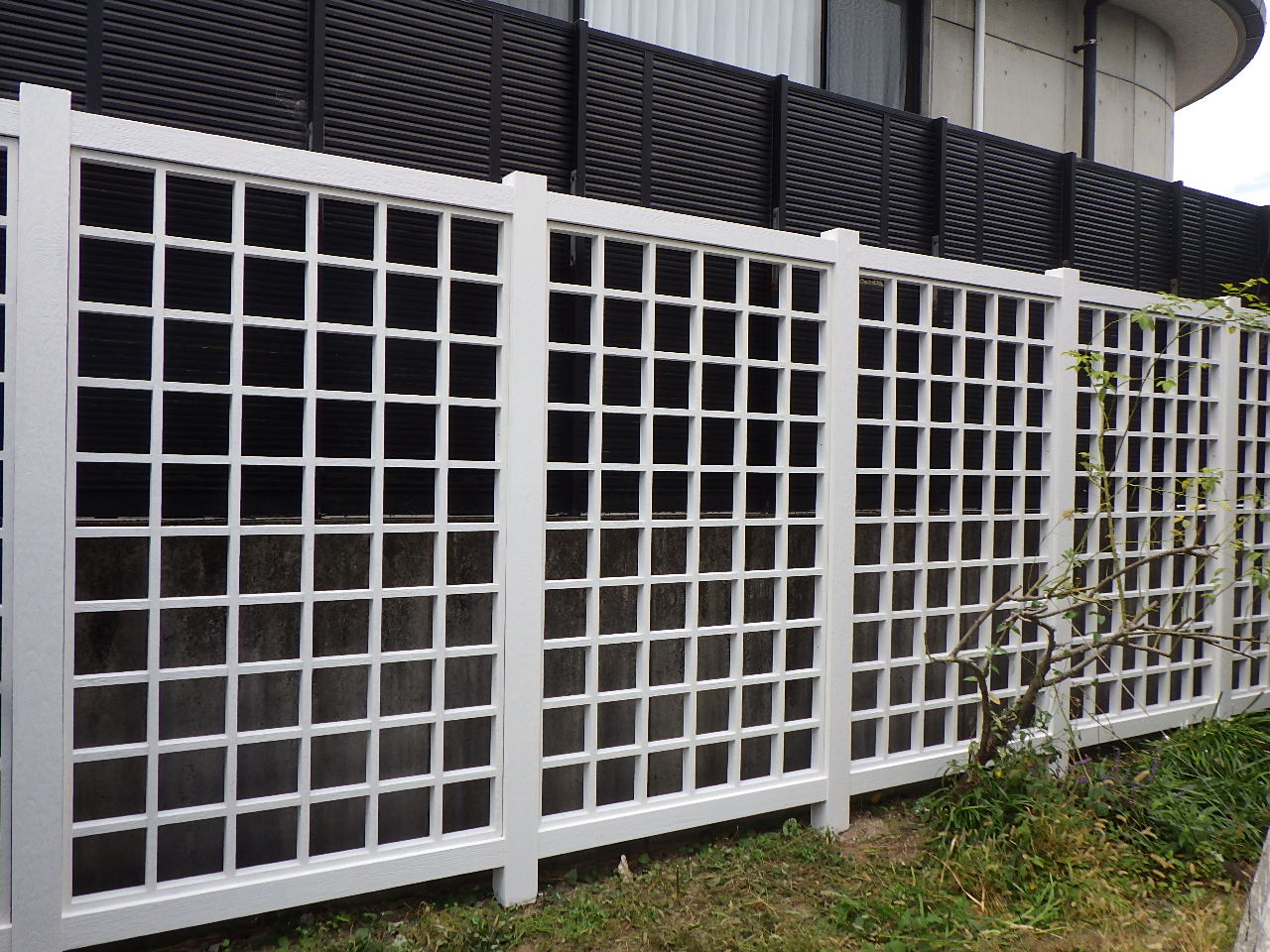 塗り替えによって明るく清潔感のある外構フェンスとして再生しました。 建物全体の印象も大きく改善されています!