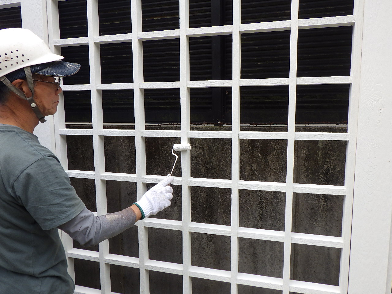 ローラーで1回目の塗装を行っている様子です。 木部を保護しながら、ムラなく丁寧に塗り広げます。