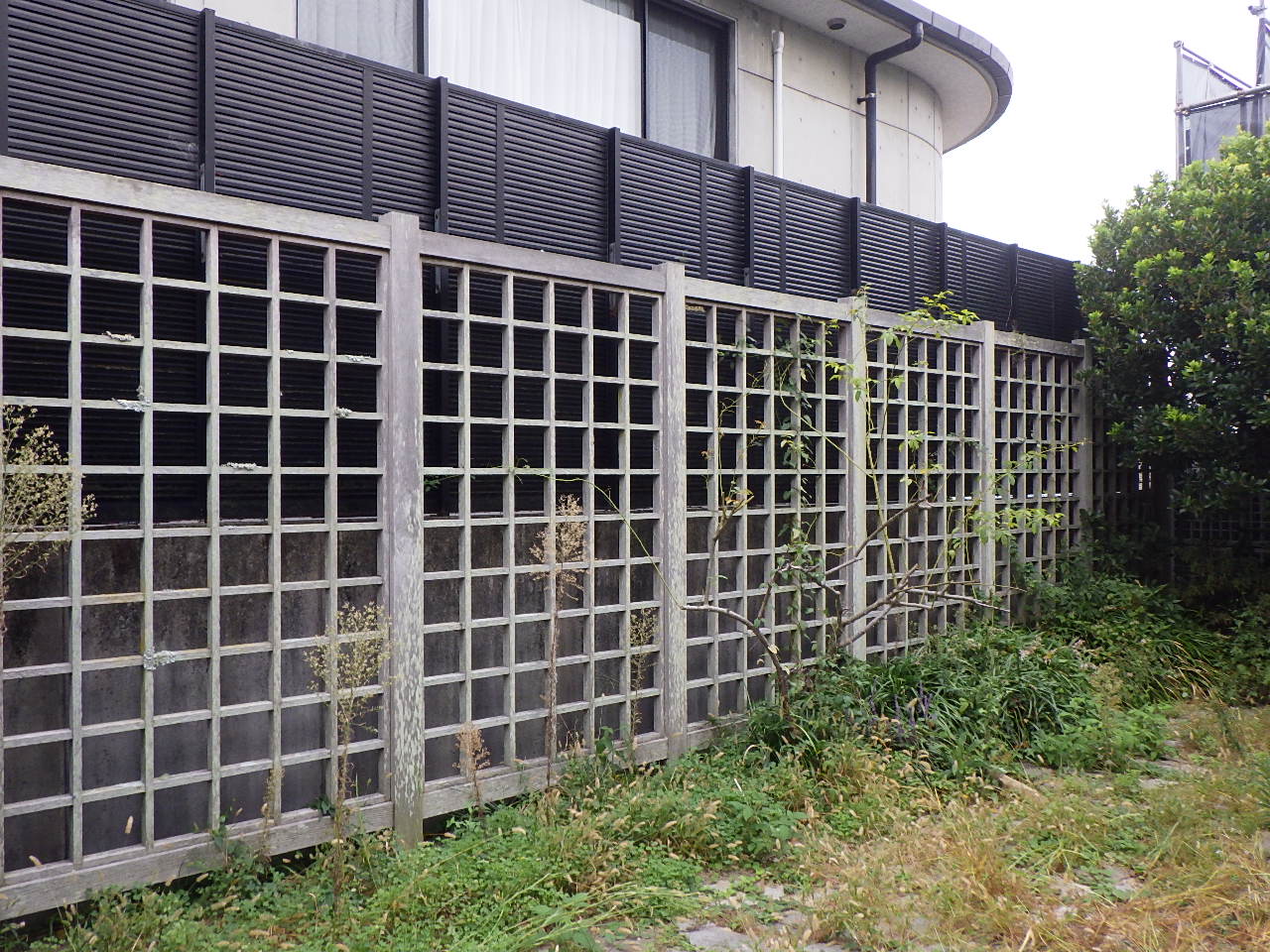 経年劣化により色あせや汚れが目立っていた既存の木製フェンスです。 見た目の印象が悪くなり、防水性も低下していました。
